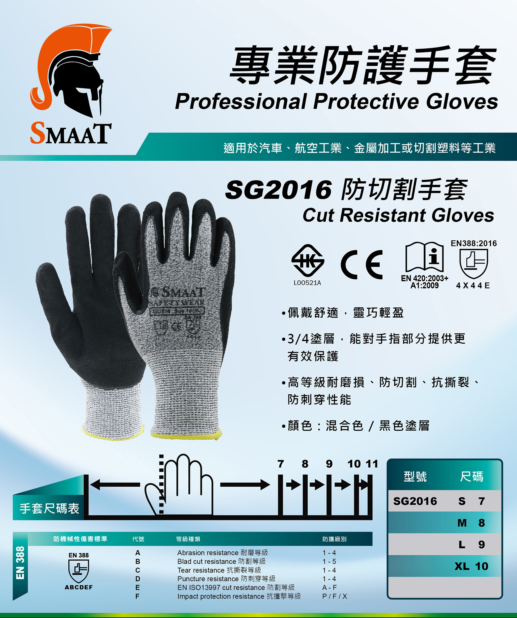 - 高等級耐磨損、防切割、抗撕裂、防刺穿性能
