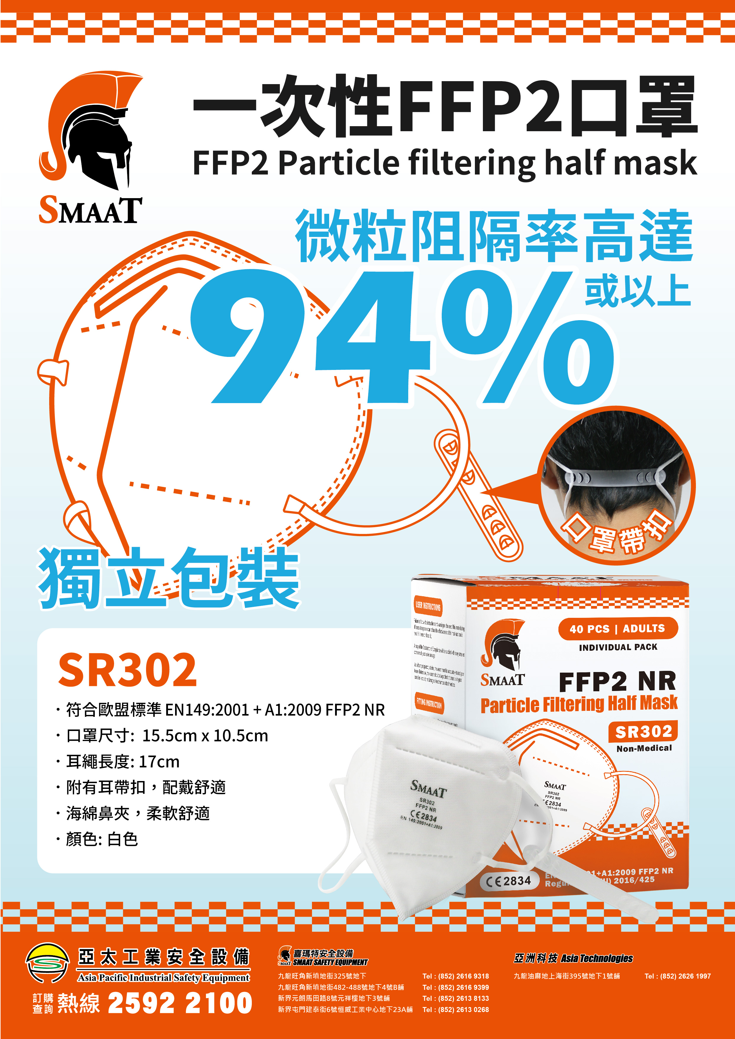 SMAAT SR302 FFP2 一次性隔塵口罩